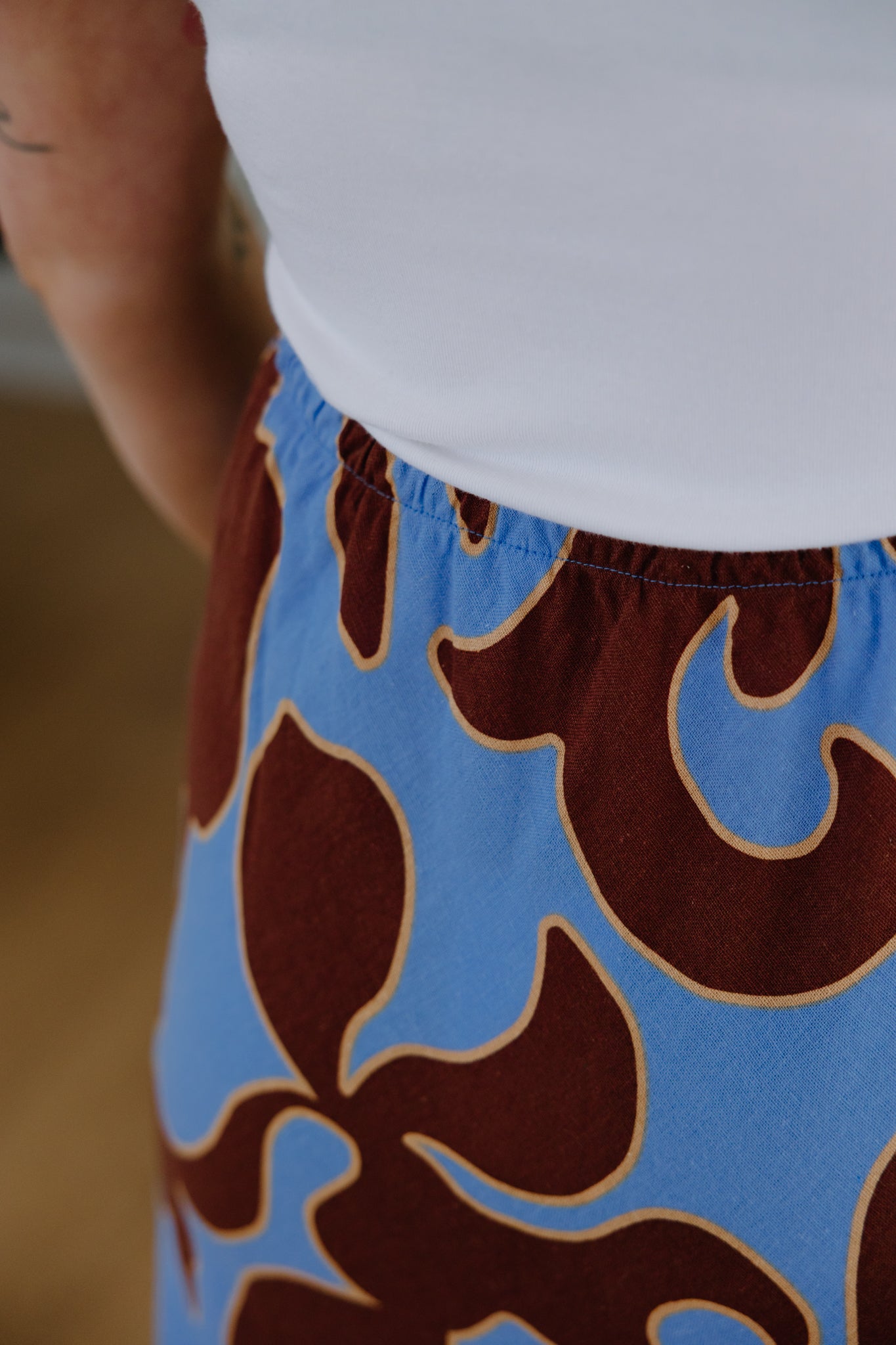 Bias Tie Skirt - Brown/Blue Pattern