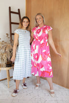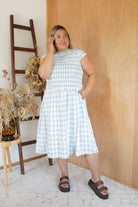 The PERFECT dress .. shirred bust at front with feature waist, cute cap sleeve and crafted in our beautiful cotton check fabric, there is so much to love about Logan!