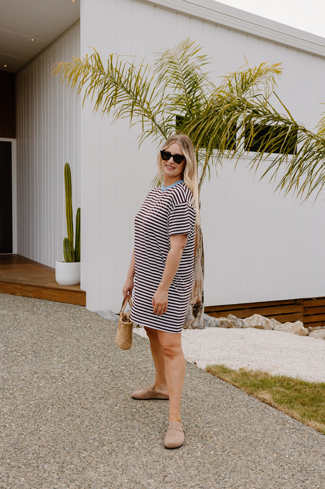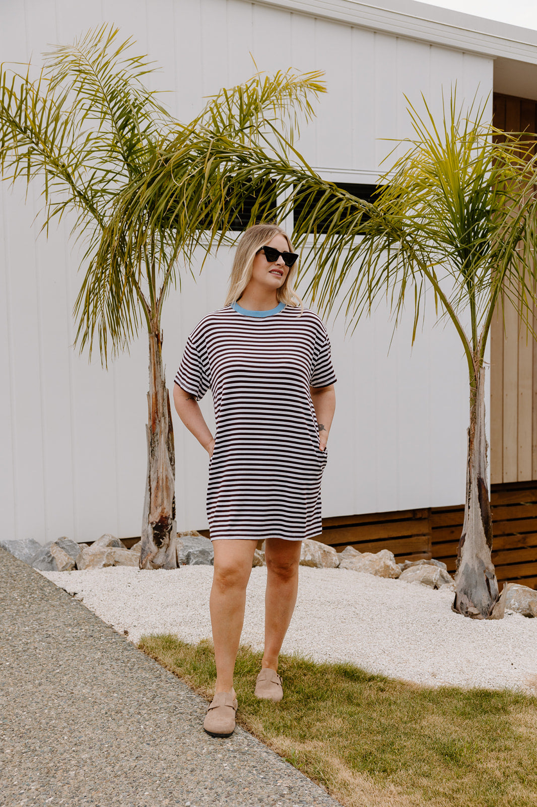 An easy throw on you’ll actually want to wear. The Heidi Frank Tee Dress is relaxed, comfy and effortlessly cool. With classic brown and white stripes and contrast a cornflower neckband it will be the dress you constantly reach for. No fuss, no overthinking, just a solid everyday piece.