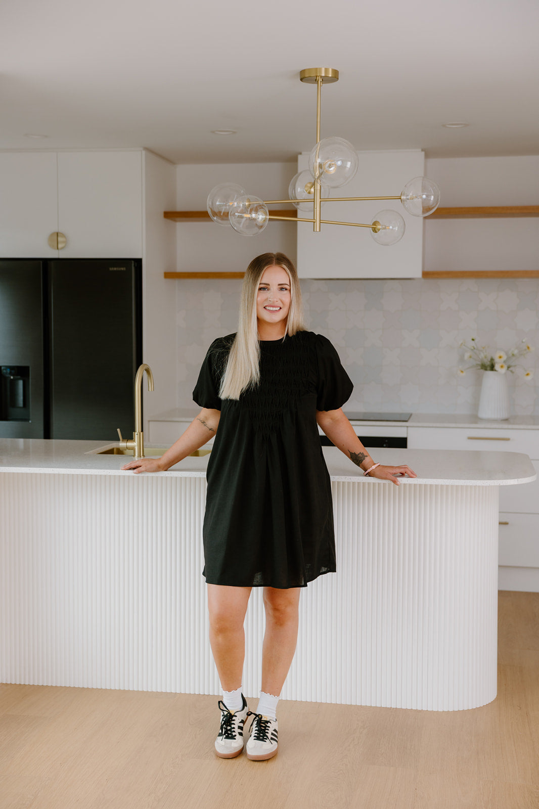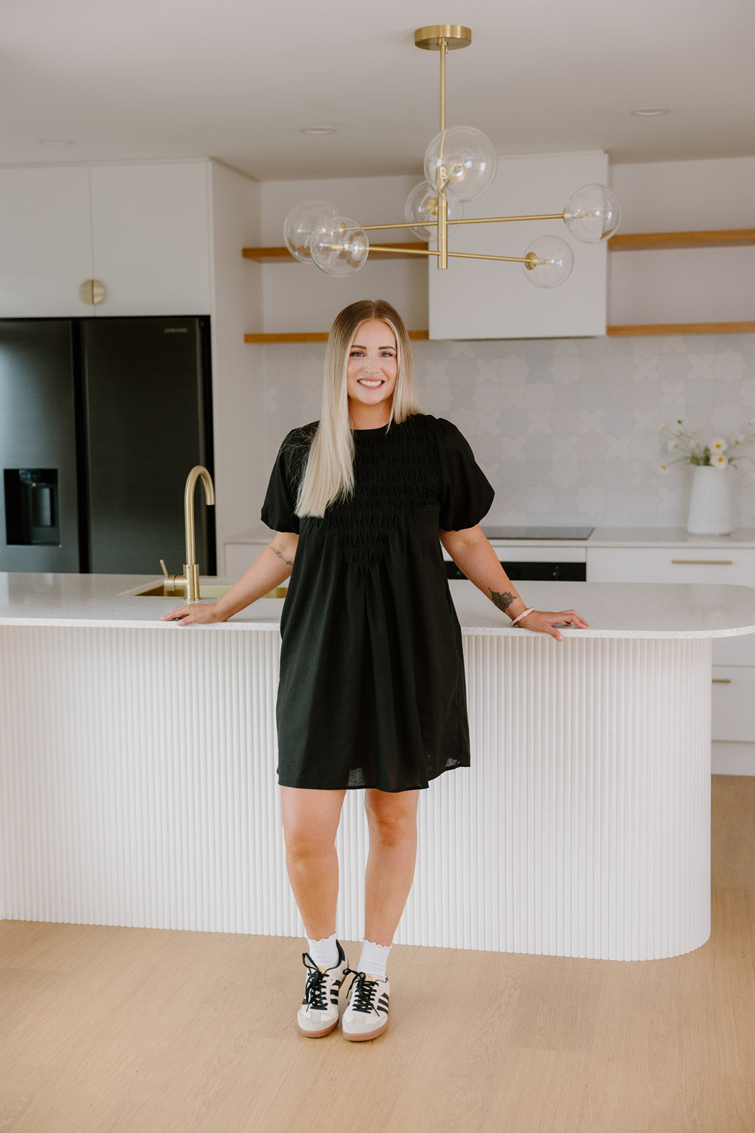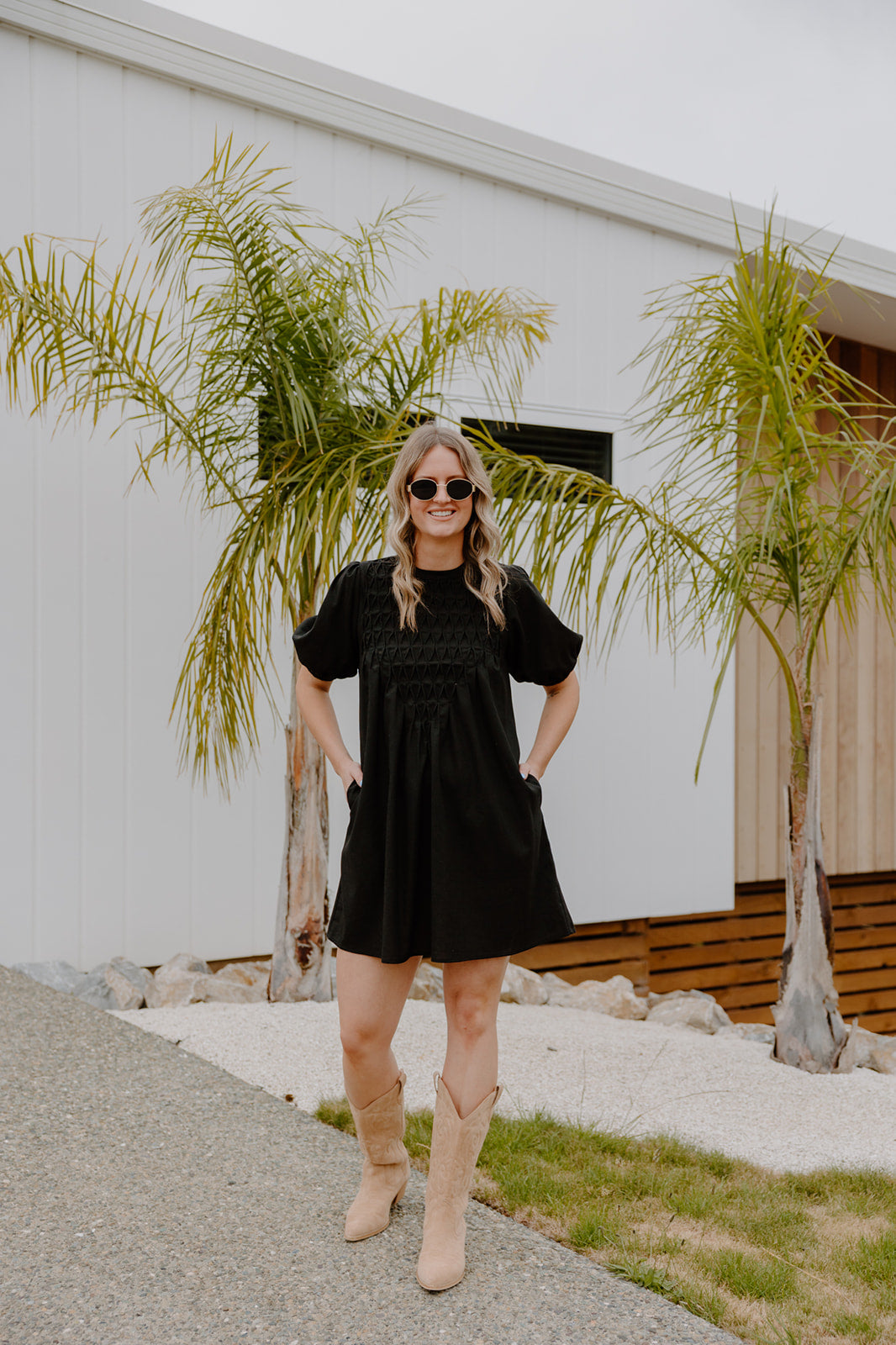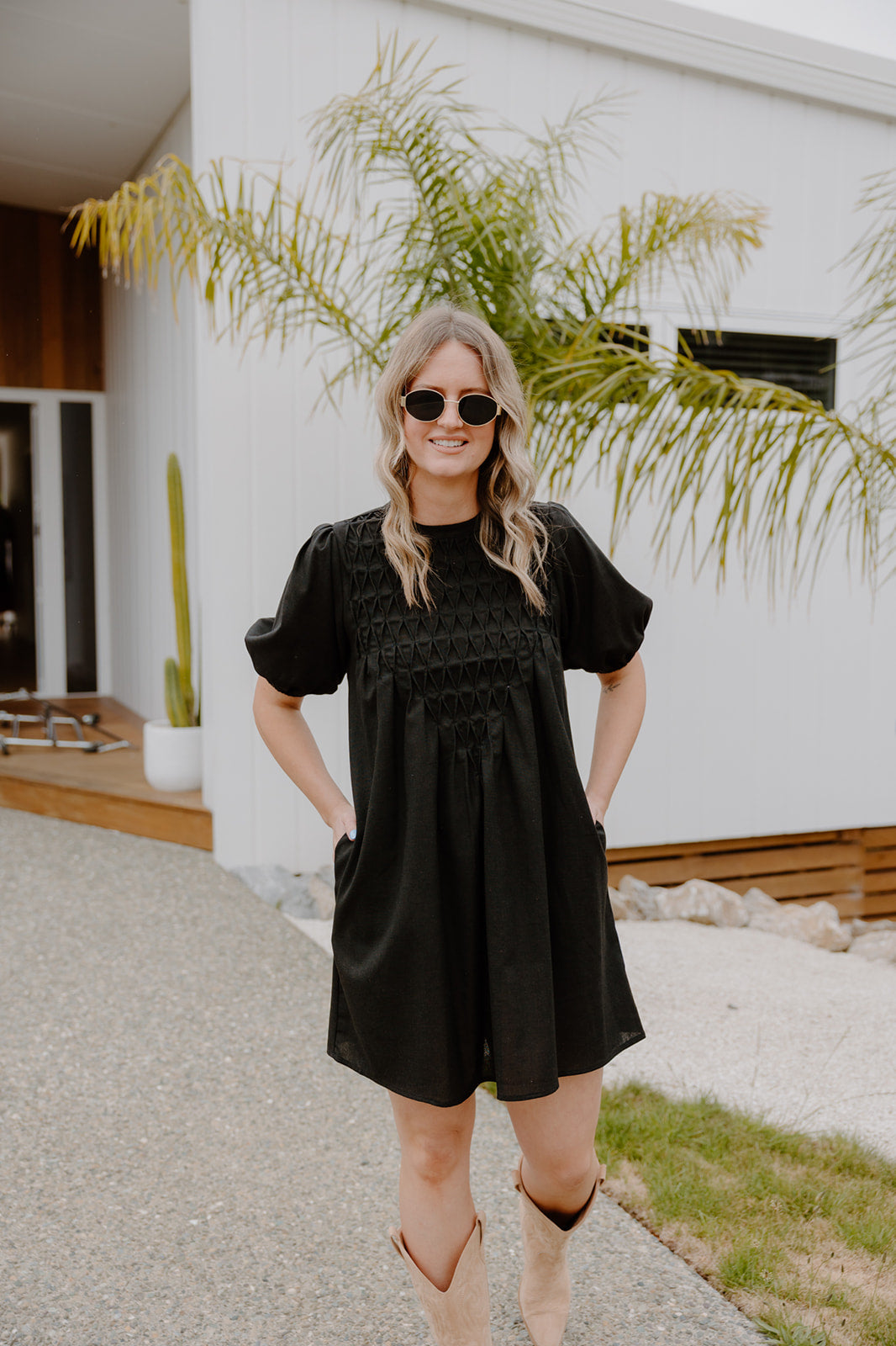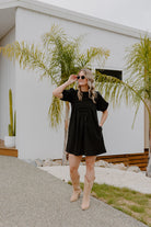 Meet the Stone Dress- easy, comfortable, and made for everyday wear. The textured smocked front adds shape through the bodice, while puff sleeves and a relaxed silhouette keep it comfortable and effortless.