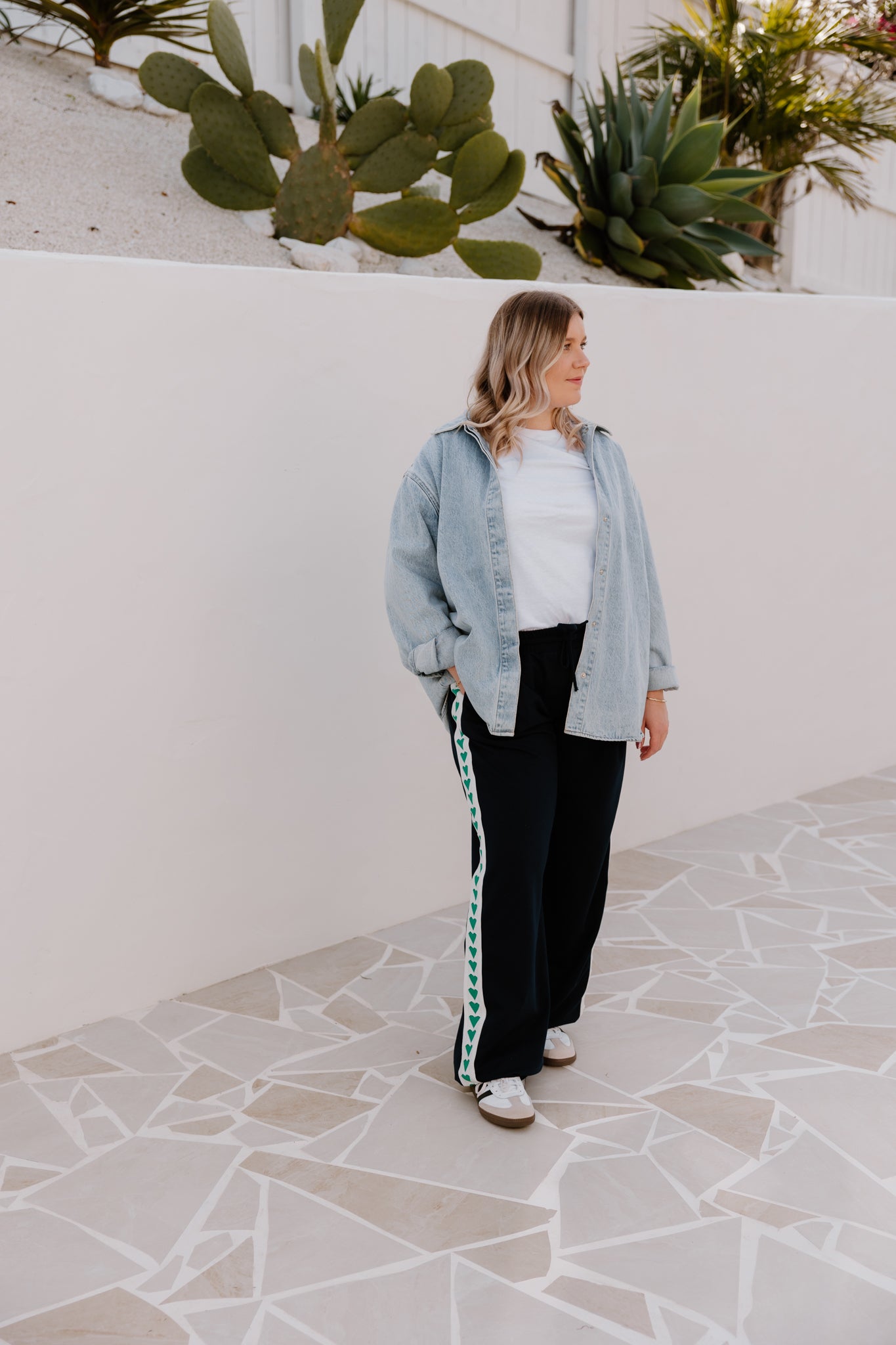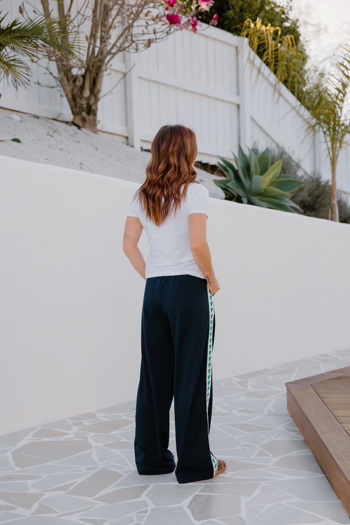 • Heart trim detail down each leg — because why not?