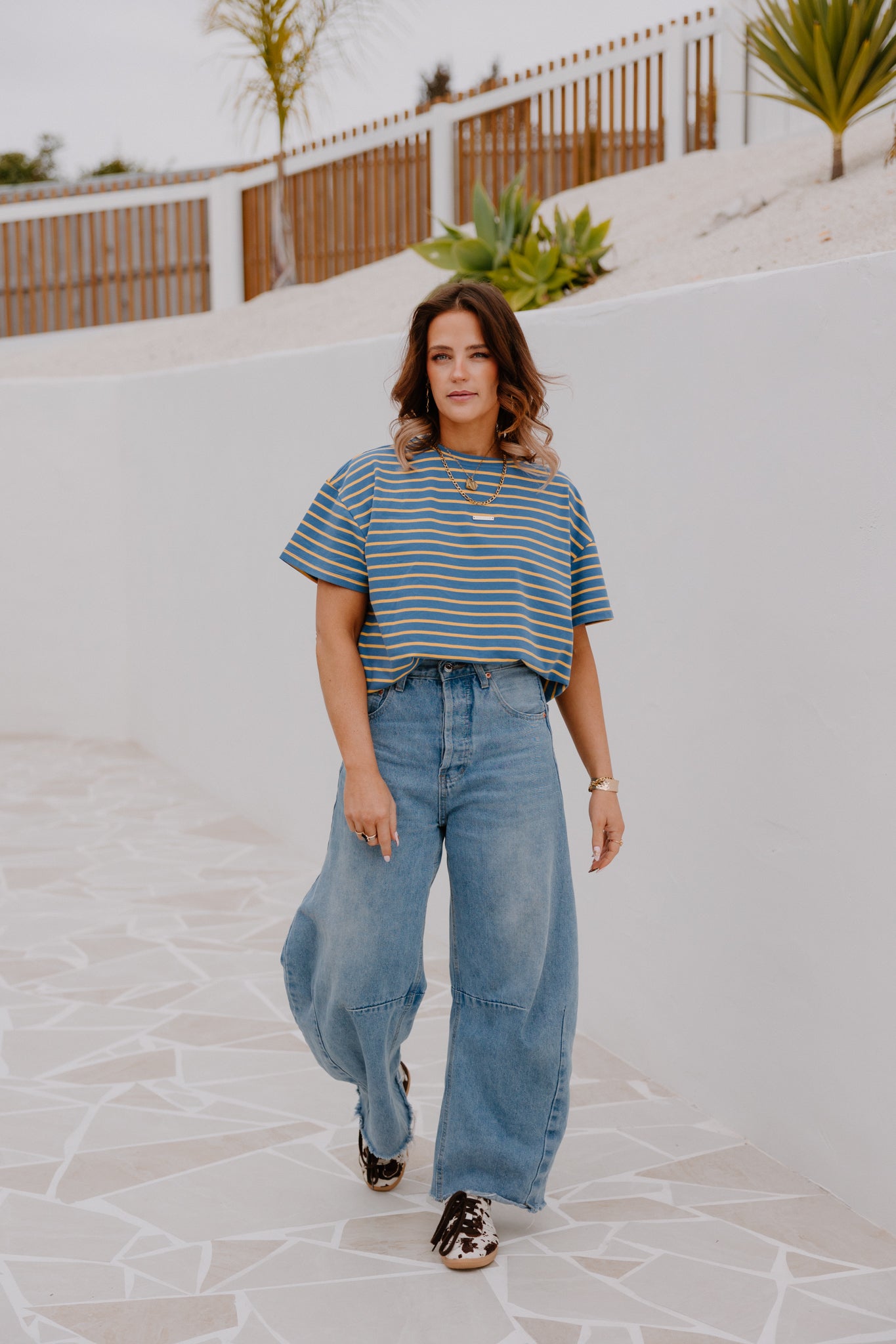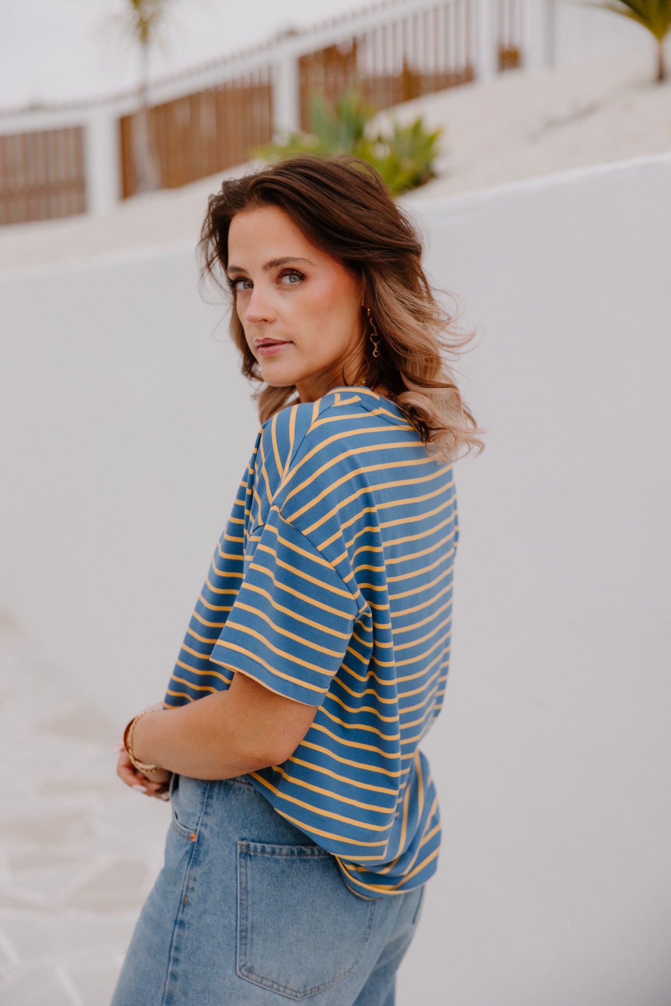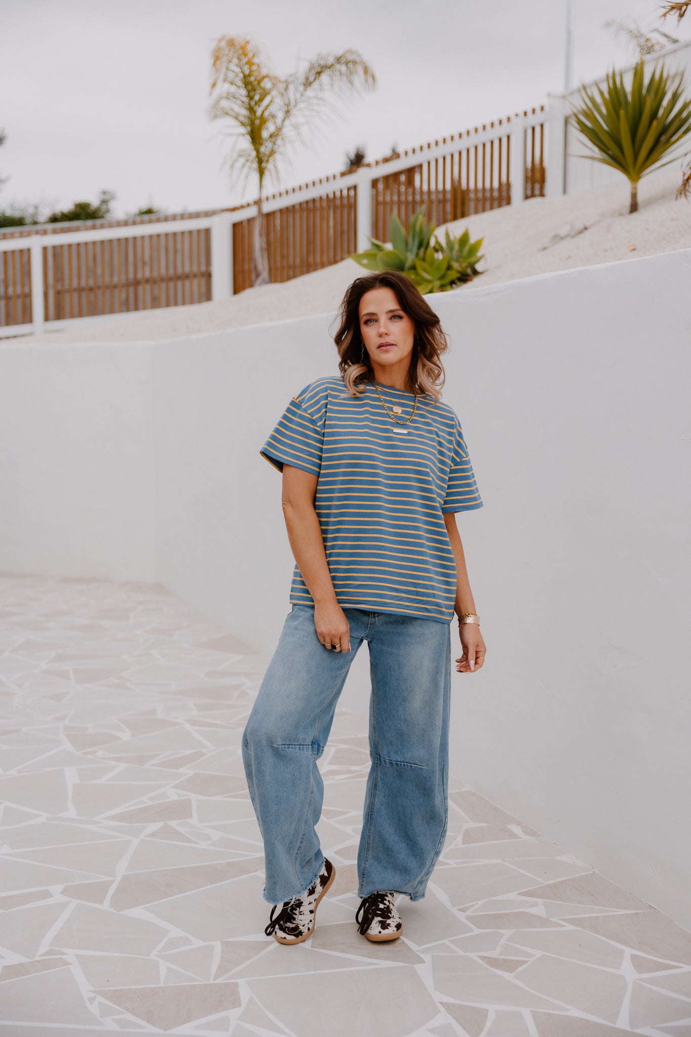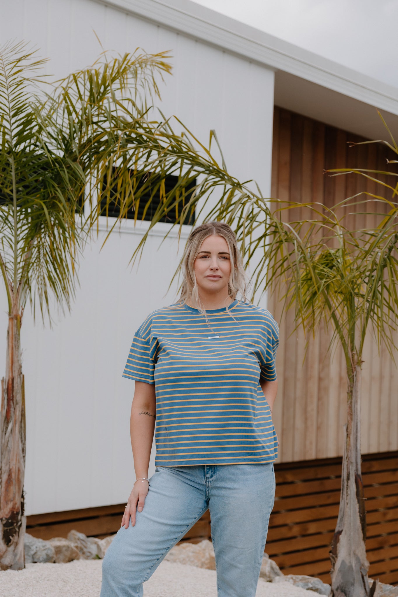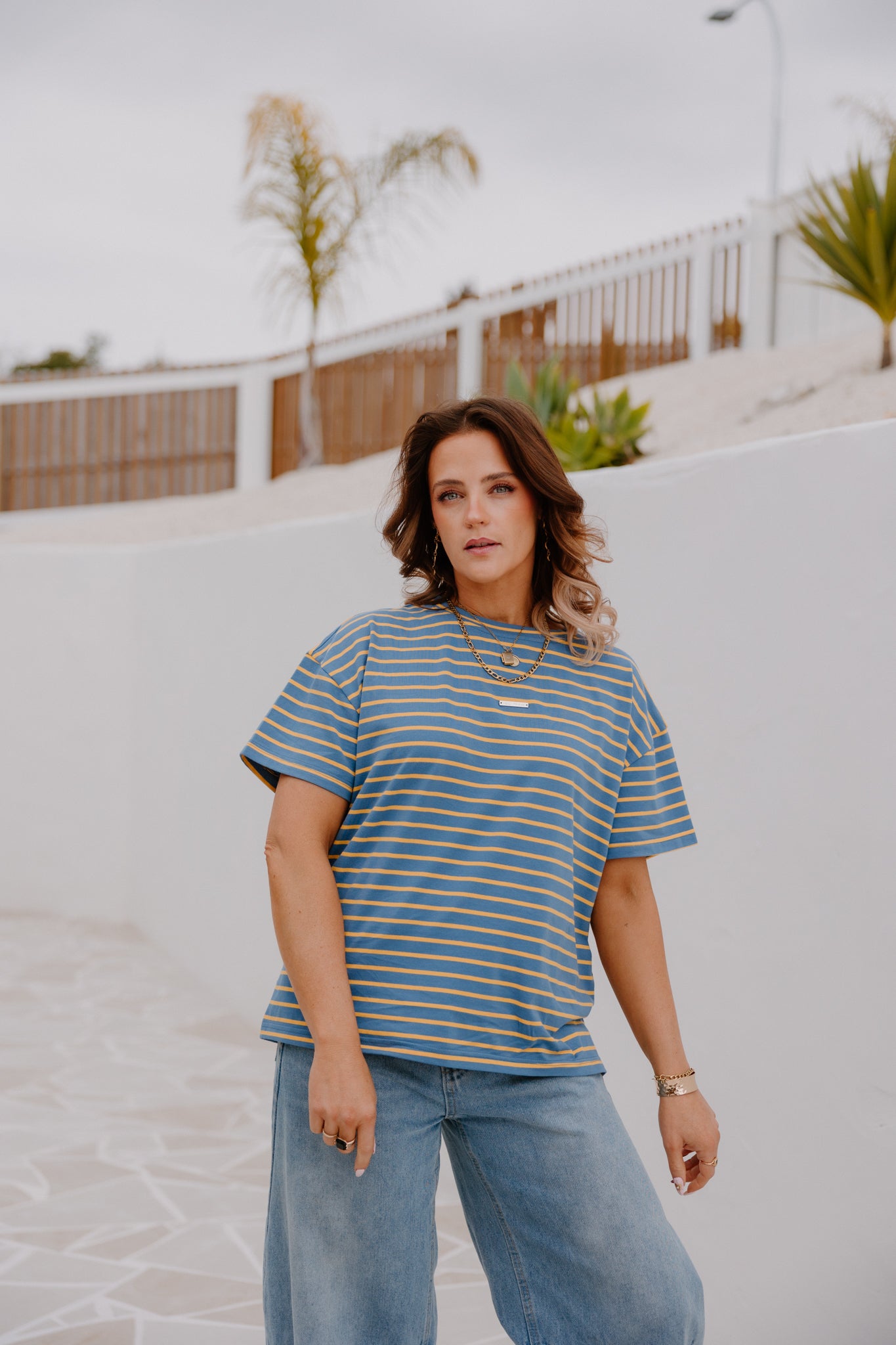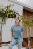 HF Oversized Tee - Blue/Yellow Stripe